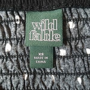 Black off the shoulder top with white polka dots! Cropped, comes up to my belly button so looks cute with high waisted bottoms. Can be worn on the shoulders as well. Soft and light material. Worn once. *tagged UO for exposure