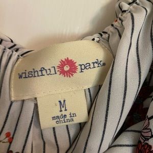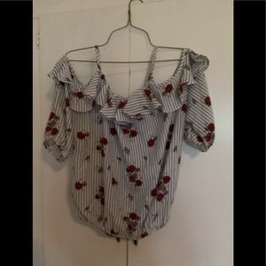 A gently worn med off the shoulder shirt with an elastic waist.. perfect for summer.. no holes or stains