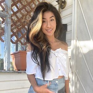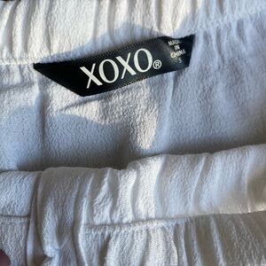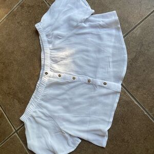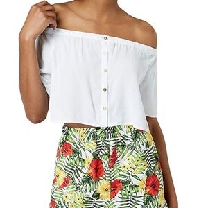 Sexy off the shoulder crop top by Xoxo. I’ve only used this top twice, it has gold button details down the front. It has adorable rushing off the shoulders so it stays in place. The crop top is flowy so it’s perfect for the weather size S