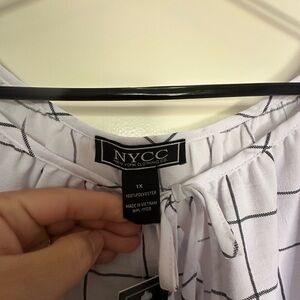 black and white off the shoulder windowpane pattern top, sleeve hems have elastic bands trough them, size 1x very cute never worn with tags comes from a smoke free home.