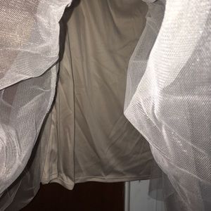 Off white, cap sleeve, tulle shirt. Never worn. I have a large chest so it hung right at my waist. Can dress up or down.
