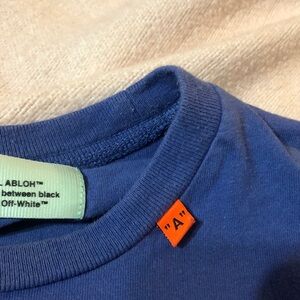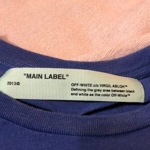 Great graphic tea from off White Concord down the inside great coloration main label, off white It’s a nice shade of purple, with kind of a fluorescent yellow green