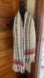 Large knit off white chunky scarf with red and blue plaid like print detail. No remarkable cosmetic issues other than some general wear. Warm and soft. No idea what brand or material it is. 76”x26”
