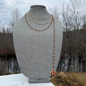 The story of this series of necklaces ive created is that I swear I saw something with a side hanging cross in a historical movie and was like ohhhhh I love that