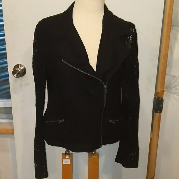 Black Jacket with an Off-Set Zipper with Lace Detailing