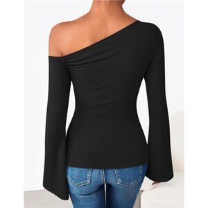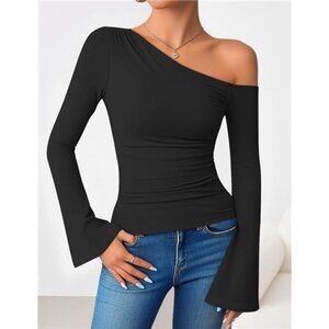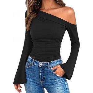 Off-Shoulder Bell Sleeve Top – Slim Fit Long Sleeve Ruched