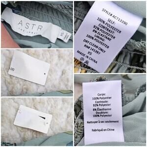 Sage green fabric w/ floral flower print in rust, blue, cream, green. Off Shoulder stretch smocked neckline, cropped length sleeves w/ elastic cuffs, smocked bottom band w/ small ruffle. Mesh lower panty part has 2 snaps at the crotch & would be hidden by pants/skirt/shorts. It's a bodysuit that doesn't look like a bodysuit. New, with tags: tags are worn/damaged. Size XS by Astr the Label. Style: Lucy Off Shoulder Body Suit.
