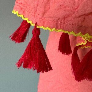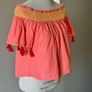 Off-Shoulder Boho Textured Cotton Top with Tassels - Size Small