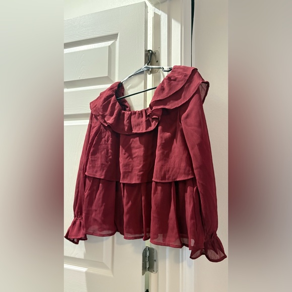 Off-Shoulder Burgundy Ruffled Blouse