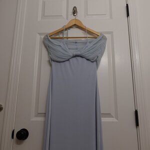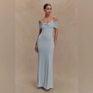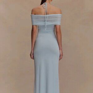 Mesh And Slinky Halter Maxi Dress - Pale Blue