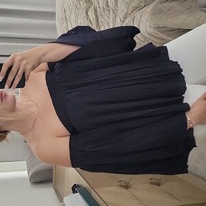 Off-Shoulder Navy Pleated Top