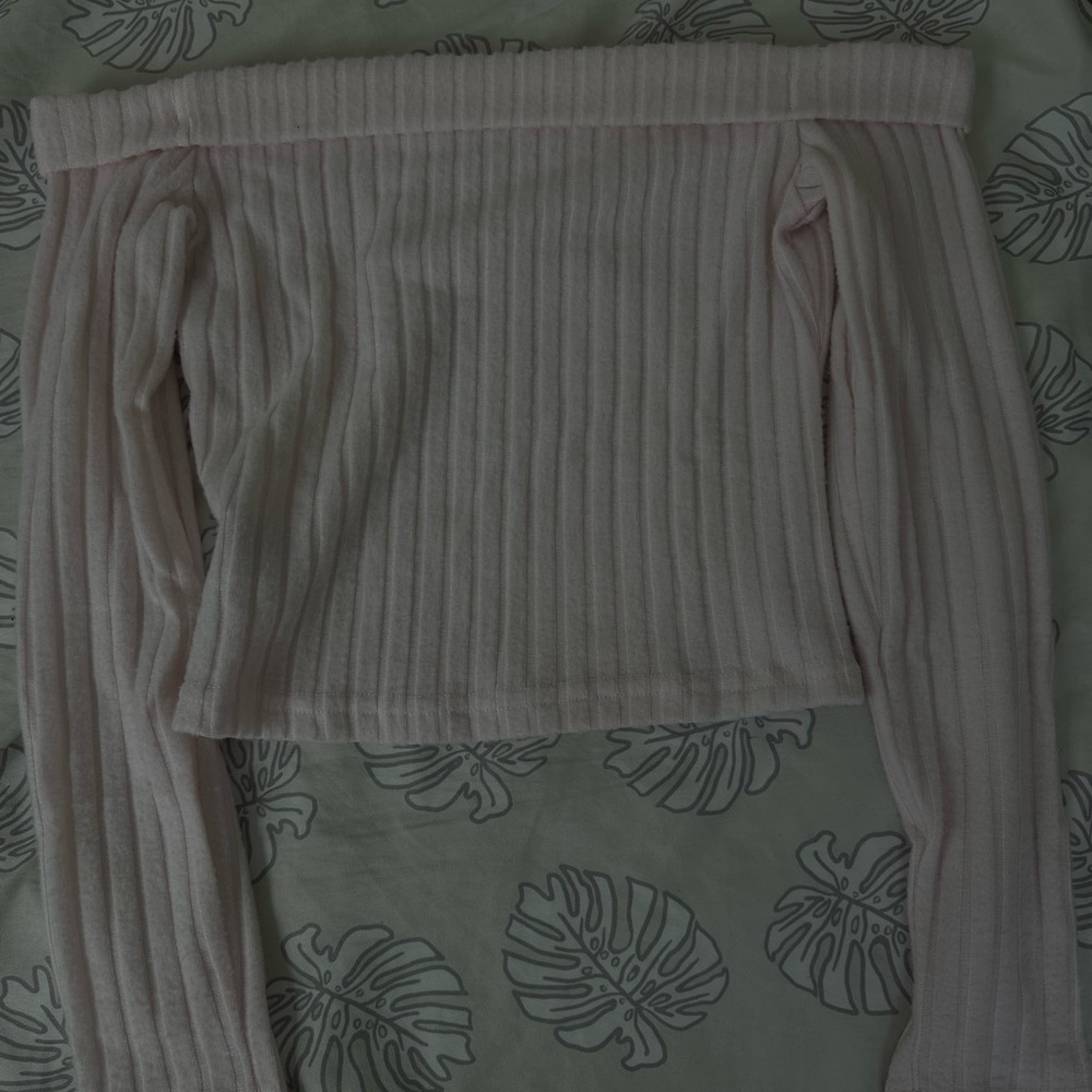 Stylish off-shoulder ribbed top in a soft pink hue. Perfect for casual outings.