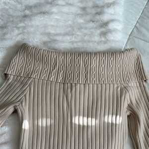 NWOT! Stylish off-shoulder ribbed sweater in a neutral tone. Perfect for casual outings.
