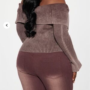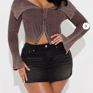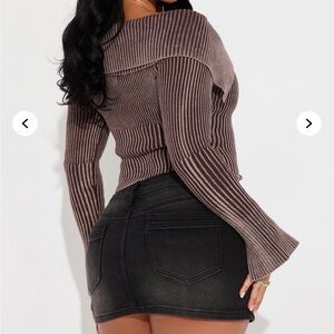Elevate your style with this chic off-shoulder ribbed sweater. Featuring a front zipper and a flattering fit, it's perfect for any occasion.
