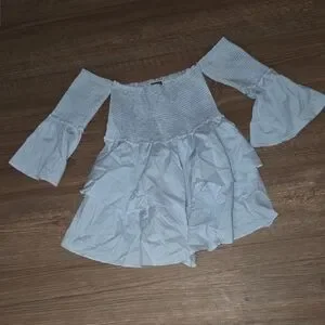 Chic off-shoulder top with ruffle details. Perfect for casual outings. Gently worn, size S