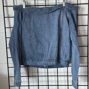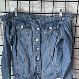 Off-Shoulder Sexy Denim Button Up Jacket Womens M Blue Boho Indy Sleeze