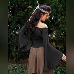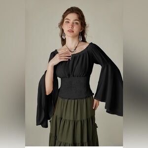 Bell sleeve, smocked top, off the shoulder, blouse