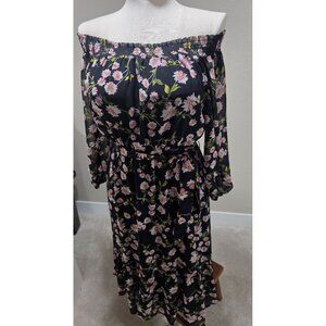 Off-The-Shoulder Floral Maxi Dress With Smocked Neckline & Belted Waist