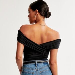 Chic off-shoulder blouse with a stylish wrap design. Perfect for elevating any outfit. Brand new with tags.