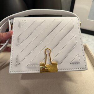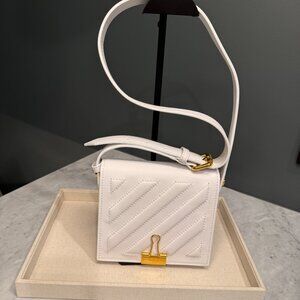 Off-White Baby Binder Clip Crossbody Bag – White Quilted Leather