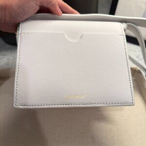 The structured silhouette is both stylish and functional, featuring an adjustable leather strap, a back exterior slip pocket, and two interior compartments for easy organization. A subtle nod to Off-White's architectural aesthetic, the bag is perfect for day-to-night wear.