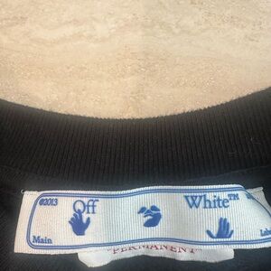 Classic black crewneck by Off-White. Features signature label detail. Only worn once