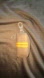 Compact Off-White key pouch in black with bold yellow stripe. Includes zipper and key ring.