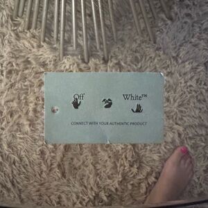 Off-White™ card with CLG code instructions. Ideal for brand enthusiasts.
