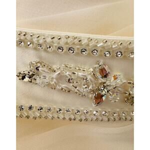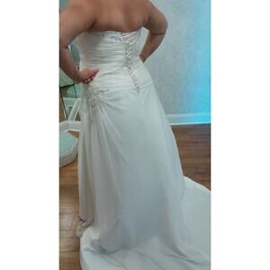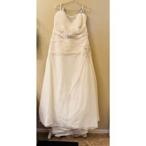 Off-White Cream Chiffon Wedding Dress Beaded Belted Wrap Bust Corset Back Sz 24W