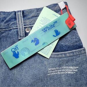 Off-White Degrade Split Hem Straight Leg Jeans in Blue White
