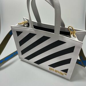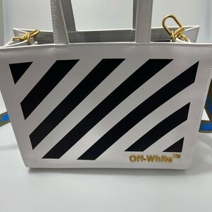 Off-White Diagonal Stripe Hybrid Leather Shopper White Black $1,380. Lightly used. Saks Tag included.