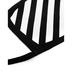 Stylish face mask with black and white stripes. Comfortable and trendy.