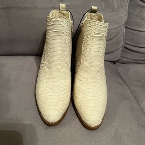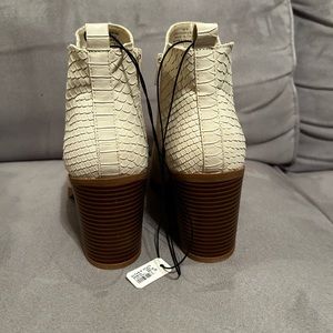 Details: Suede-like finish on the outside, ankle height, 3.5” heel