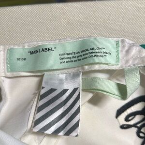 This Off-White hat showcases a vibrant green brim paired with a sleek white crown, embodying a modern and stylish look. The embroidered “woman” logo on the front adds a unique touch, making it a standout accessory. Its six-panel design ensures a comfortable and secure fit for any occasion.
