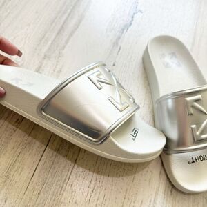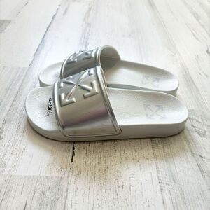 Off-White HF Mirror Silver Arrow Embossed Logo Rubber Pool Slides 36 / Women’s S