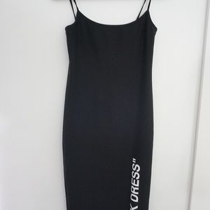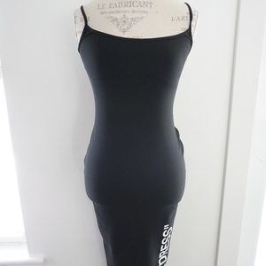 Midi tight dress is detailed with spaghetti straps and contrasting maxi lettering print at the front