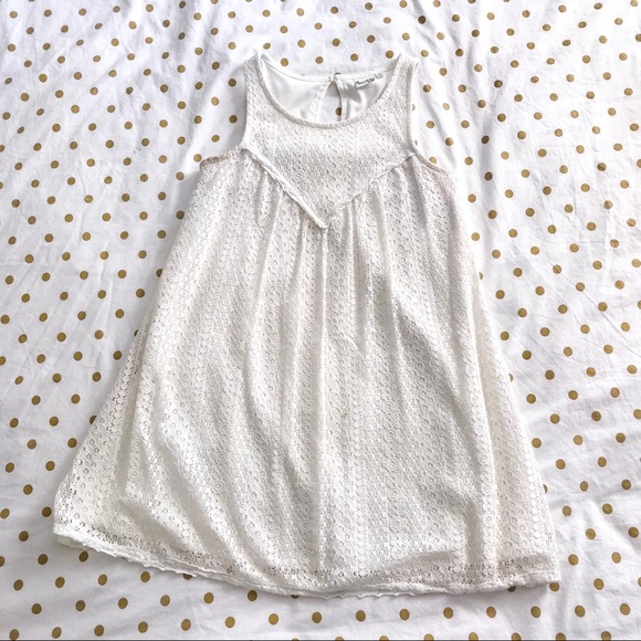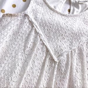 Off-White lace tank, has a lining to prevent see through fabric, and has a button to secure in the back at the top of the halter neckline. Girls size 10, but fits like a Juniors XS