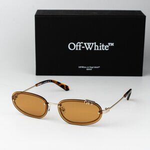 Off-White MIAMI Men Sunglasses Gold Camel Oval OERI13M MIAMI 7662 NEW AUTHENTIC