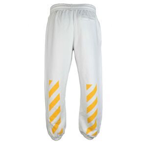 Off-White Caravaggio white jogging pants.<br />Straight cut jogging pants with yellow diagonal stripes.<br />Graphic print on the front.<br />Slit pockets on front and back.<br />Elastic ankles.<br />100% cotton.
