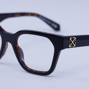 Authentic Off-White OERJ07P STYLE 7P 1000 eyeglasses in black frame with havana inside.