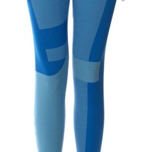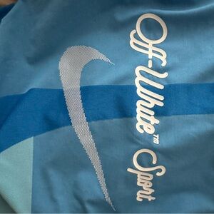 Stylish blue long sleeve crop top & leggings set by Off-White x Nike Sport. Features logo details.
