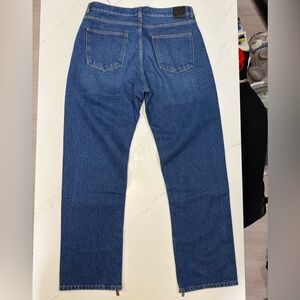 These jeans are Brand New with tags. It’s a medium blue with zippers in the bottoms. Waist 34. It’s a pretty heavy fabric. COA within the tag.