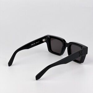 The Off-White VIRGIL sunglasses (model OERI008, color code 1307) channel the late designer's unmistakable vision—blending contemporary luxury with urban attitude. Featuring a bold square frame in matte black acetate and sleek dark grey lenses, these sunglasses make a confident, style-defining statement.