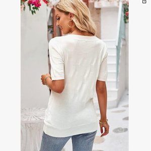 Off-White V-Neck Short Sleeve Knitted Sweater by Arach & Cloz