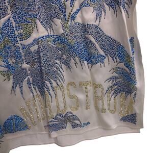 Channel tropical vibes whatever the climes in this sizzling slipdress sprinkled with bitsy beads shaping colorful palm leaves and gleaming logo letters.