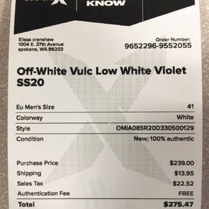 Off-White Vulc Low White Violet SS20 Men's Size 41