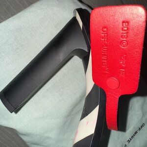 Stylish Off-White sandals with striking red and black straps. Perfect for a bold look.