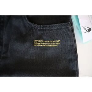 Off-White Women's Sz 26 Black Slogan-Print Straight High-Rise Denim Jeans