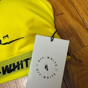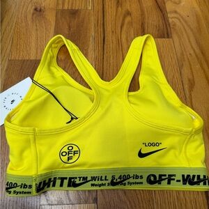 Bold yellow sports bra by Off-White. Features signature branding and stylish design. Ideal for active wear. Brand new with tags