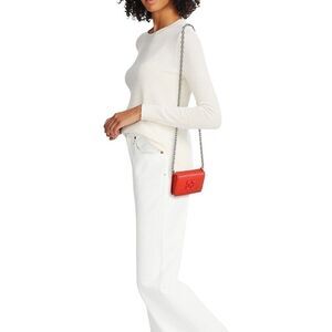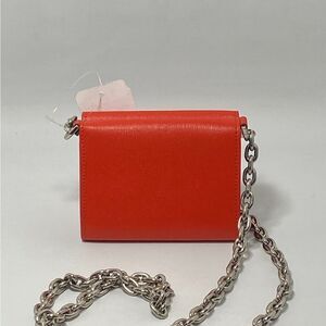 A chain crossbody strap lends some edginess to this leather wallet with tonal logo plaque at the front and center.